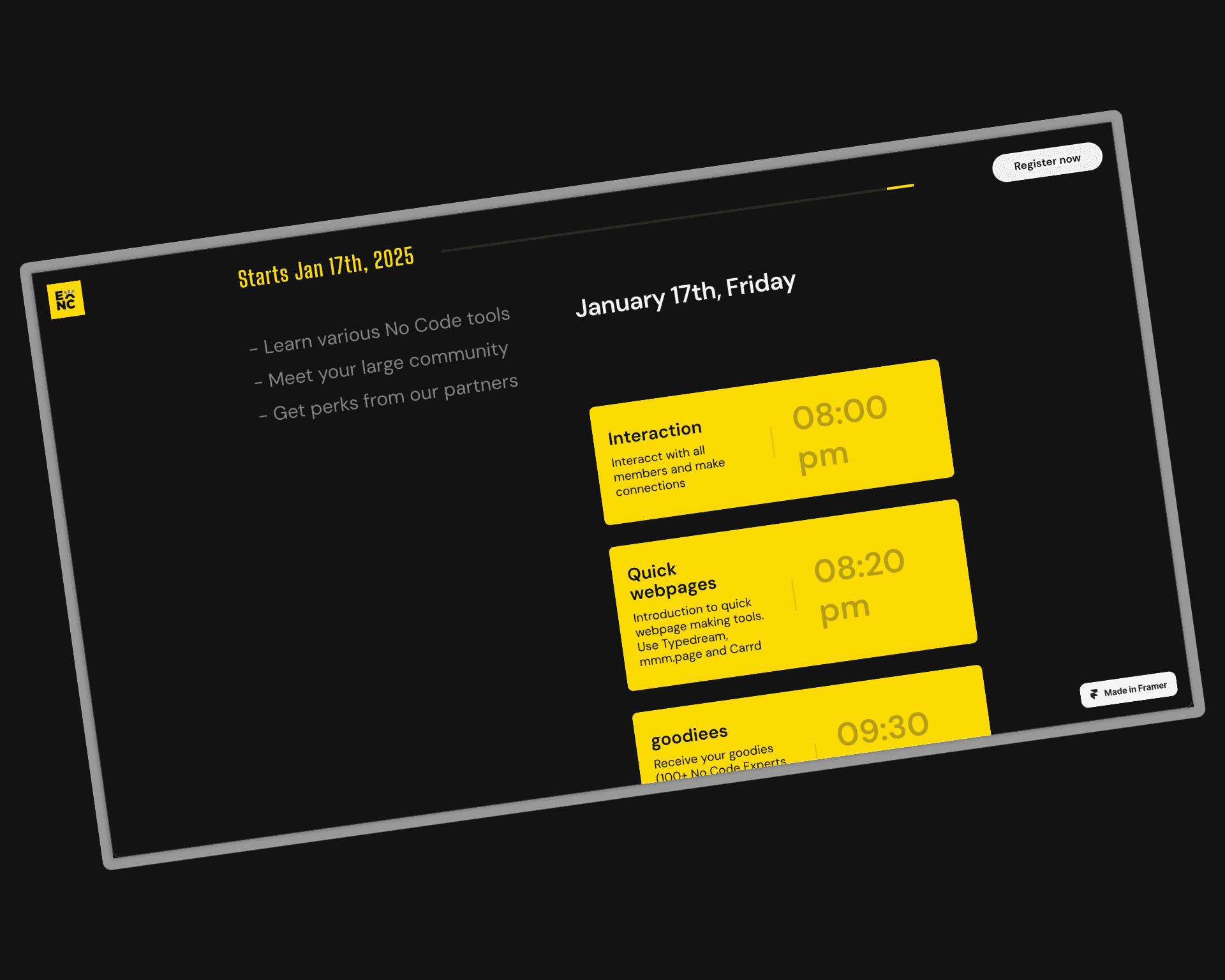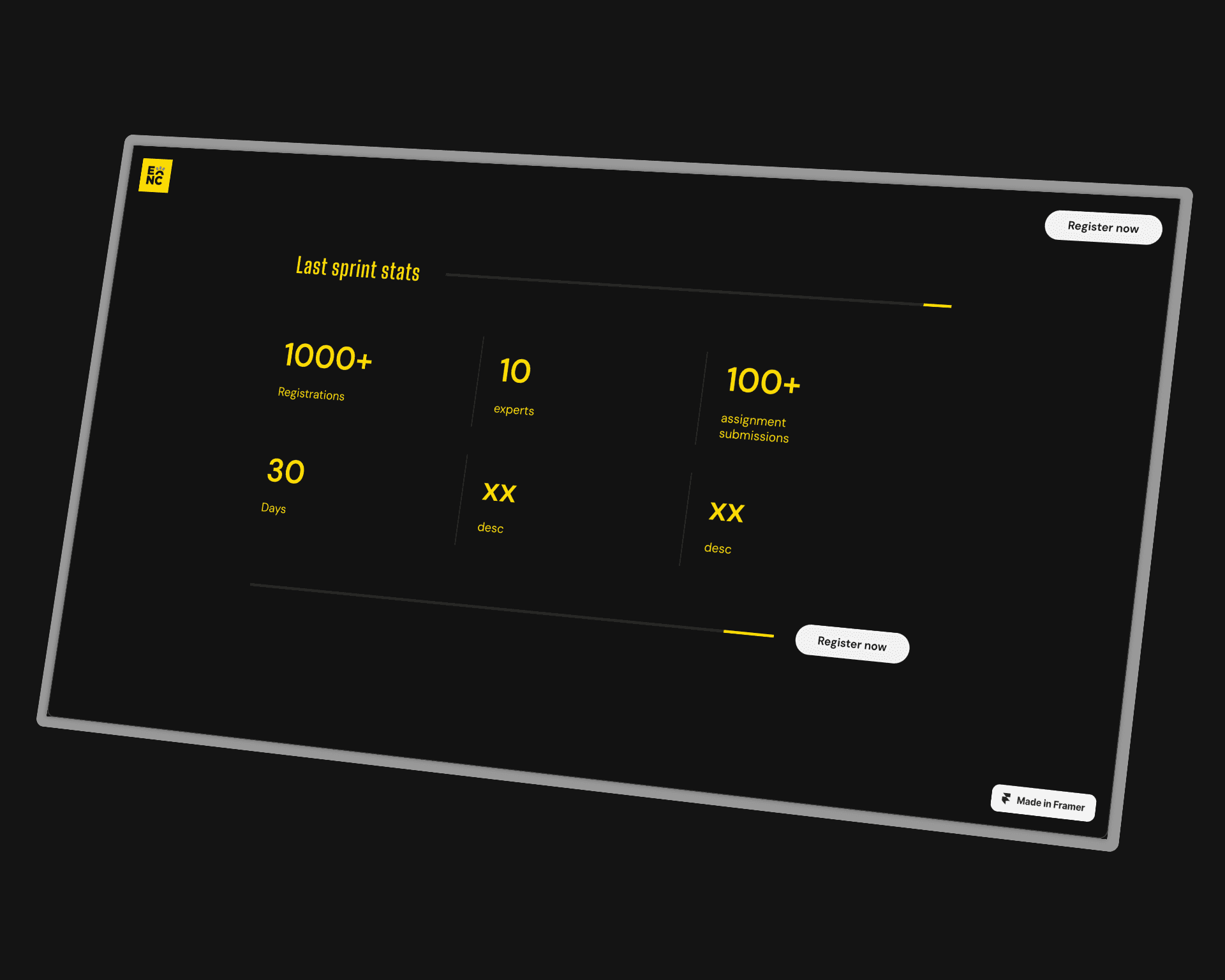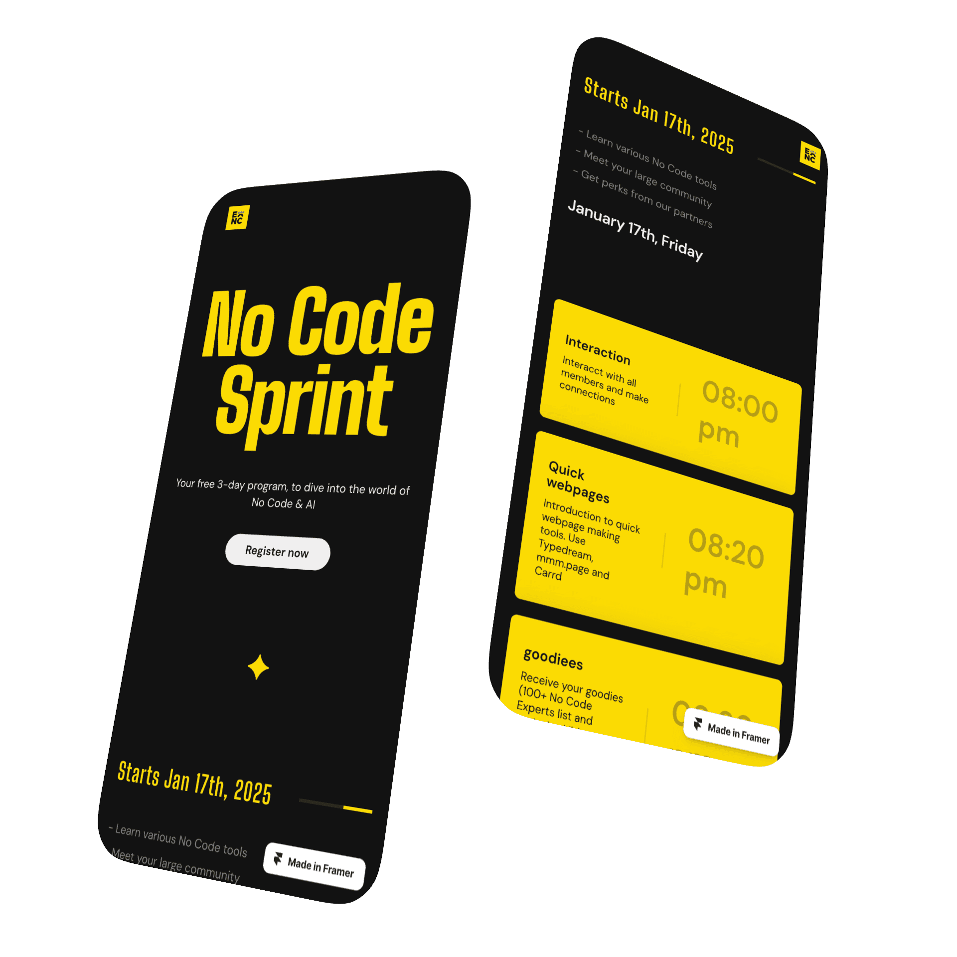 Convert curious visitors into committed No Code Sprint members and ensure visitors leave the page with a clear understanding of what they’ll learn and build.